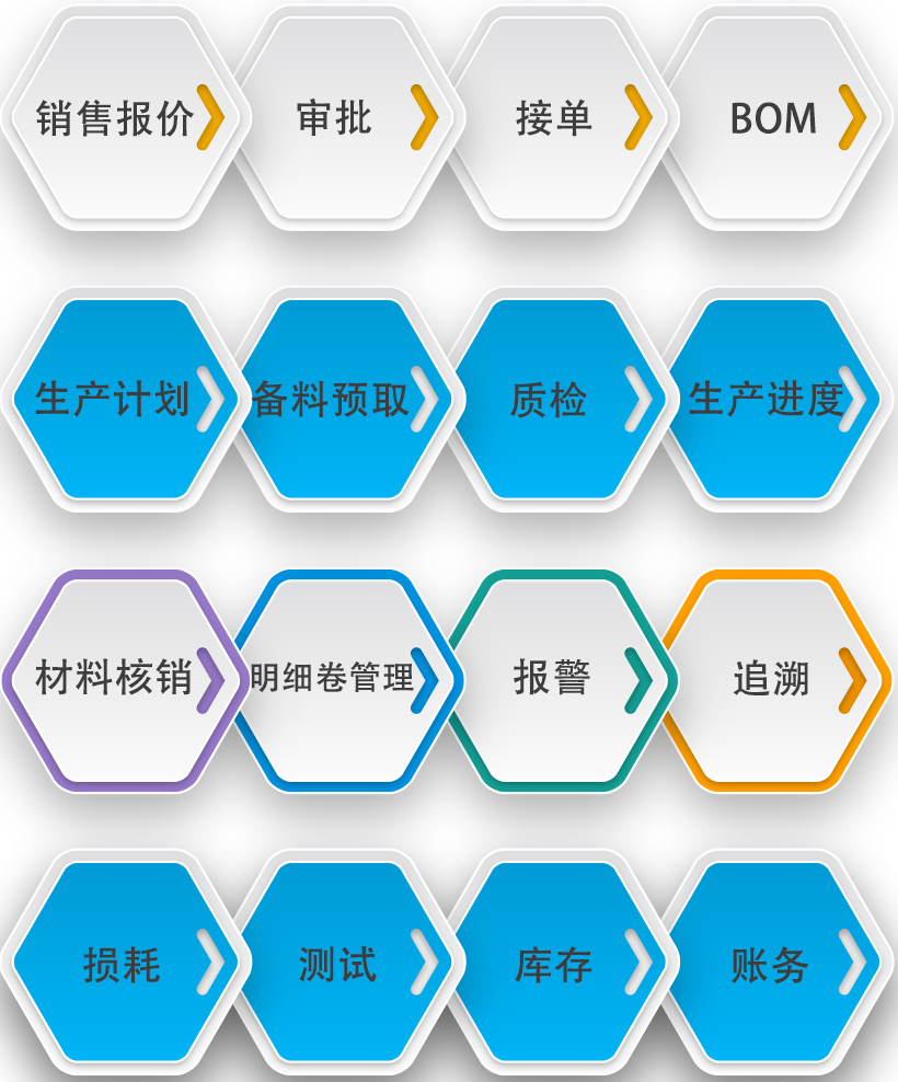 装饰板PVC压膜专用软件:专门针对PVC装饰片行业的ERP管理软件,包括销售报价、接单、审批、BOM、生产计划(印刷、贴合、分切)、备料预取、质检、生产进度、材料核销、明细卷管理、报警、追溯、损耗、测试、库存、账务等全过程管理的专业软件。
